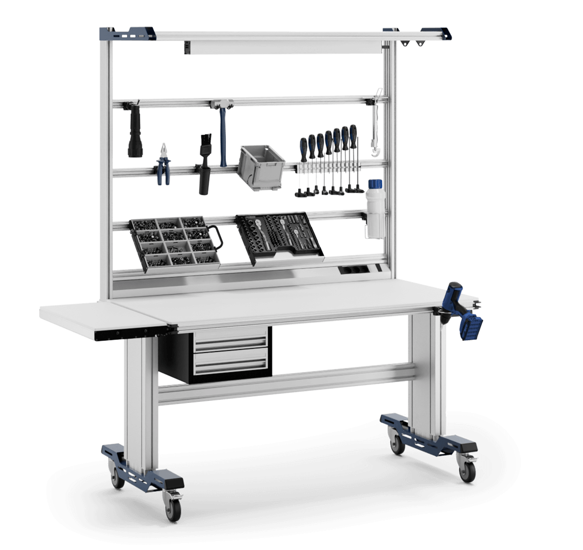 Die Flexibilität des CLIP-O-FLEX® Arbeitsplatzsystem bringt nicht nur Ordnung und Sauberkeit am Arbeitsplatz sondern auch jede Menge an Entlastung hinsichtlich Ergonomie und Effizienz. Werkzeug, Material und Arbeitsflächen können leicht angebracht, entfernt, verschoben und verstellt werden. Rüstzeiten und Wege fallen weg, Platz und Zeit können optimal eingesetzt werden.