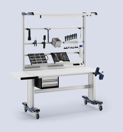 Discover the range of modular worktables, table tops, work top extensions and transport units.
